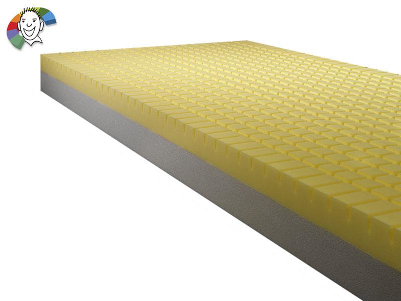 De onderlaag van het Zwitserse Evopore HRC schuim brengt een nieuwe innovatie in comfort. Door de unieke formule waarmee dit schuim geproduceerd wordt, kent het materiaal een uitstekende stabiliteit gedurende het gebruik en zal deze nauwelijks hardheid verliezen. Diverse testen bewijzen dan ook dat het liggedrag van Evopore HRC veel constanter blijft t.o.v. conventionele HR- en polyetherschuimen. Daarnaast is het materiaal in zijn geheel latexvrij. Basis Zorgmatras is gemaakt van HRC-schuim. HRC staat voor High Resilience Climate, welke de opvolger is van het traditionele HR-schuim. HRC kenmerkt zich door zijn stabiliteit gedurende het gebruik, welke tot 40% meer behouden blijft dan conventionele schuimsoorten, welke worden toegepast binnen de zorgmarkt. De Viscopore toplaag is door unieke vervaardigingsmethodiek in staat om zeer zware belastingen aan te kunnen voor langere periodes. Viscopore is uitermate geschikt voor inzet binnen de intensieve zorg- en comfortmarkt. De druk verlagende eigenschappen in combinatie met de kubusstructuur zorgen voor reducering van schuifkrachten en de mogelijkheid om het matras preventief en in veel gevallen ook curatief in te zetten in de strijd tegen decubitus (tot en met categorie 2). Door het ademend vermogen en het behoudt van stabiliteit zorgt het Viscopore ervoor dat broei en "het hangmateffect" worden vermeden. Hiermee komt de mobiliteit van de gebruiker niet in gevaar. Daarnaast is het materiaal in zijn geheel latexvrij. Samenstelling: -8 cm Evopore HRC ondersteunend en druk verdelend schuim -7 cm Viscopore druk verlagend schuim in kubusstructuur Specificaties: -voorzien van incontinentiehoes (bi-elastisch, antiallergisch en machinaal wasbaar tot 95 graden) -brandveiligheid schuim BS EN 1021-1, BS EN 1021-2, BS EN 597-1 en BS EN 597-2 -brandveiligheid incontinentiehoes BS 7175 - Crib 7